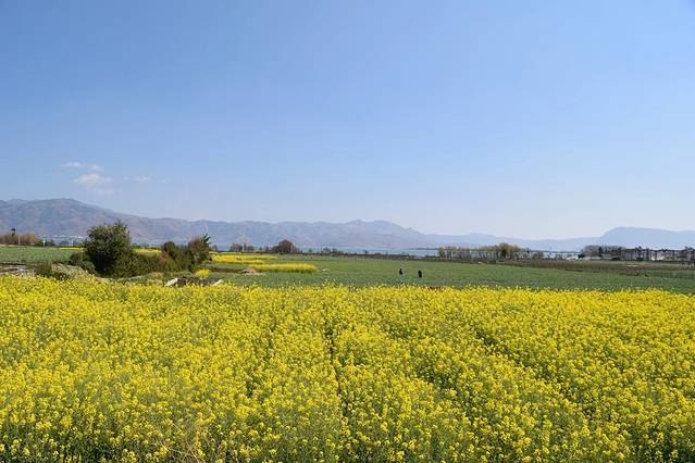 大丽线的路边,还在大理区域。近处的油菜花田,中间的蒜田,远处的洱海。空旷的美着。云南的宜居指数可见一斑呀。