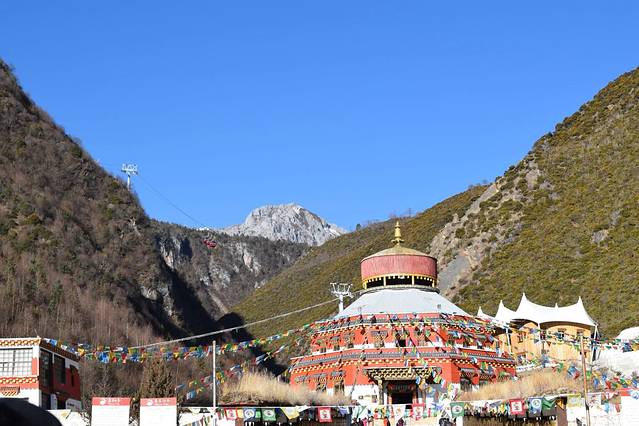 也是路边的一个景点。这里有中国最大的转经筒。当然,这是导游词的介绍,具体无从考证。