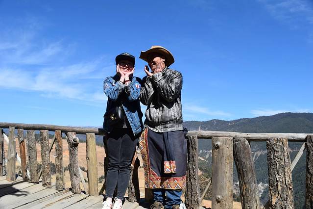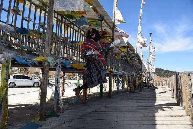 我邀请了着装是当地的人拍照,大叔上半身很西部牛仔,下半身藏族特色。跟我合照时大家都很拘谨,完全是到此一游的。跟丫丫合照时,外表严肃的大叔却很幽默。放开了拍照还愿意卖萌的。嘻嘻