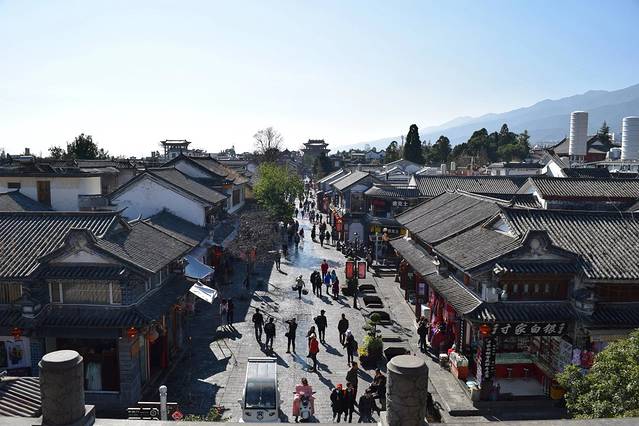 高处俯瞰中的古城,因为是白天,所以行人较少吧。