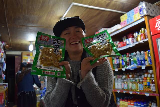 这货从长沙带了两包泡椒凤爪在车上吃完后就从昆明开始念叨要买。抵不住我攻击她一包凤爪要卖20元左右太坑爹一度放弃。在丽江古城内找到了一小店卖10,激动的呀~~