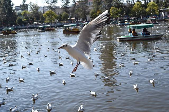 话说来翠湖公园主要看海鸥,刚开始极有兴致,看到海鸥群起的时候还能激动的跳起来!