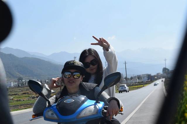我们两个“司机”,脑子里荡漾着云南名曲“老司机,带带我”。喜欢我骑的小电动,特有特色,不是满大街的款式哟