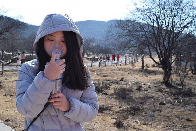 去香格里拉途径的景点,海拔高有3000米了。坐车还是有些晕的。呼吸不知道是思想负担还是生理反应,有些许的不顺畅。扎西在丽江的路上给我们发了氧气,也是团费里包含的。他说要早点吸,等有反应在吸就有些迟了。由于我身体素质不是很强悍,所以默默的迅速吸完了。其实整个行程下来,我们都没有高反的现象的。
