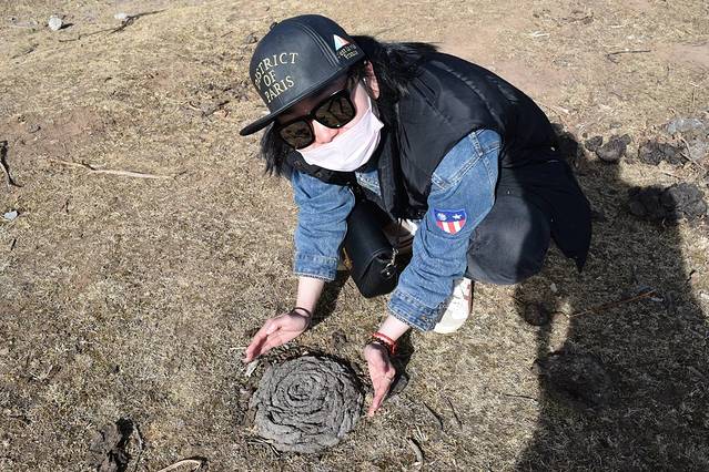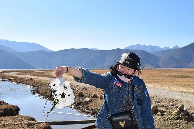 这个时候没有牦牛出没,所以没有危险系数,但我离她还是愿意远一点的,这个状态的人也是蛮危险的。