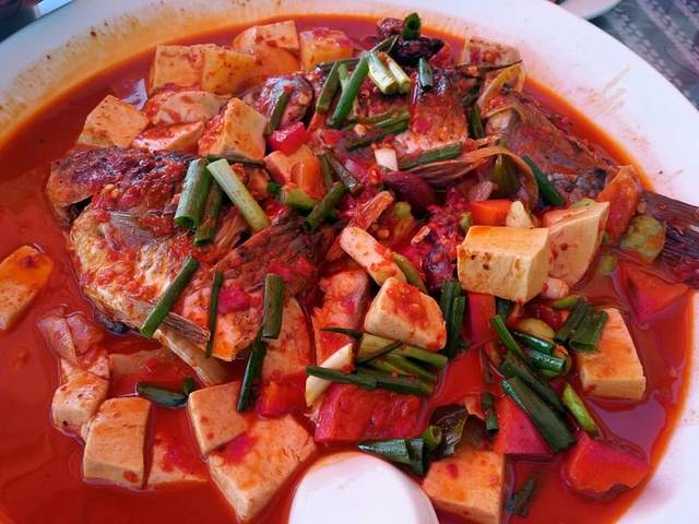 午餐吃的是私房菜,酸辣鱼是必点的,其他的瓦片豆腐、炒饵块啊什么的,可以随意,味道很好;