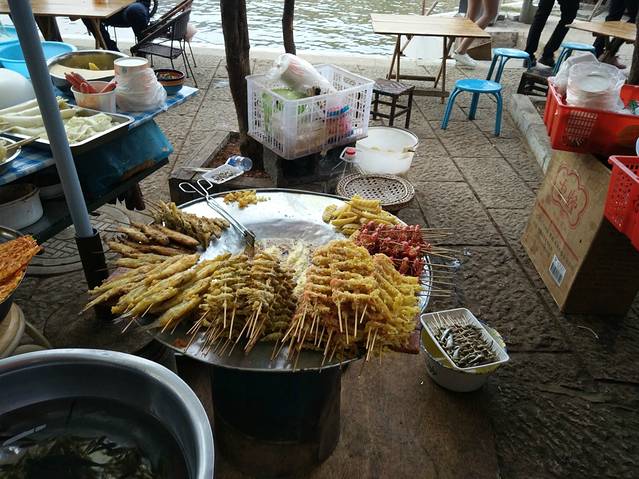 晚餐吃的是白族烧烤,最好吃的是五花肉,其他的一般,三个人都不会烤,简直醉人~还好老板娘推荐了炸小鱼(具体叫什么忘了),很大一份,好吃~