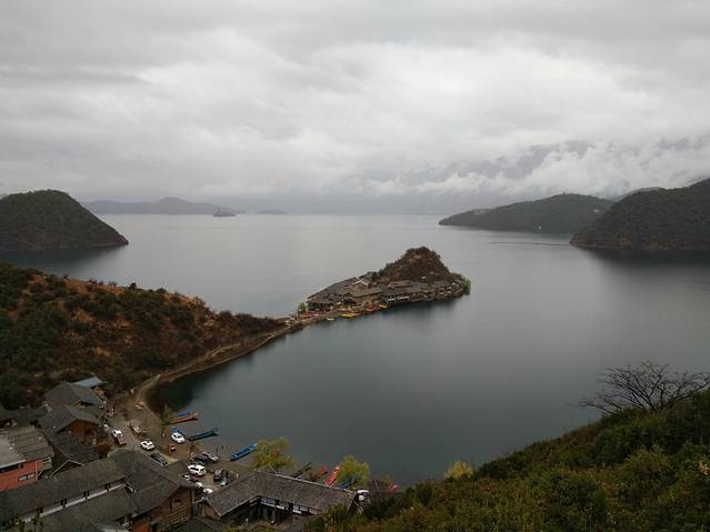 放下行李休息好就在里格村附近转悠,可以爬上观景台,俯瞰里格村,虽然天公不作美,但是风景还是很不错的,水真的炒鸡清啊,泸沽湖像一面镜子~