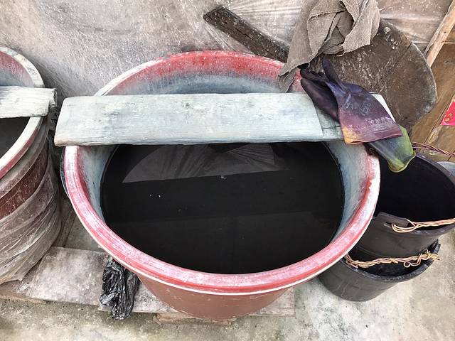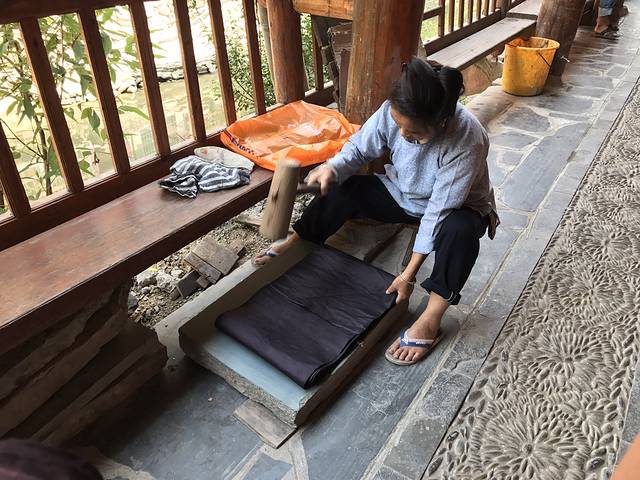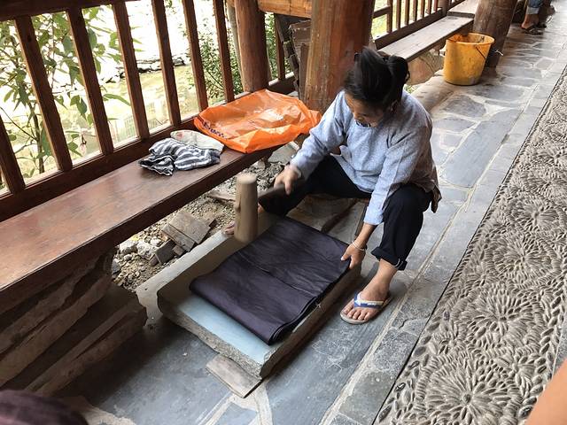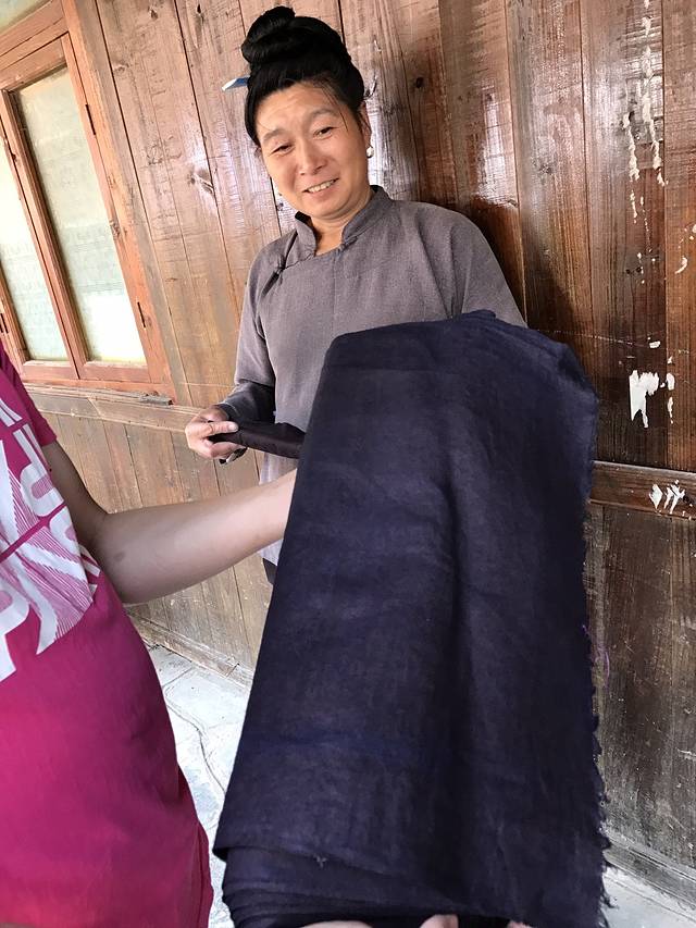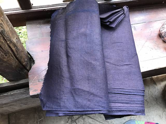 染布。一个传统的手工工艺!传统来说,染一匹布要用10年以上时间,从种植染布的植物,到染,晾,锤反复不少于5次,才有一匹3米的布。直到做成女儿出嫁的嫁衣,这是妈妈对女儿的祝福!这就是一份爱!