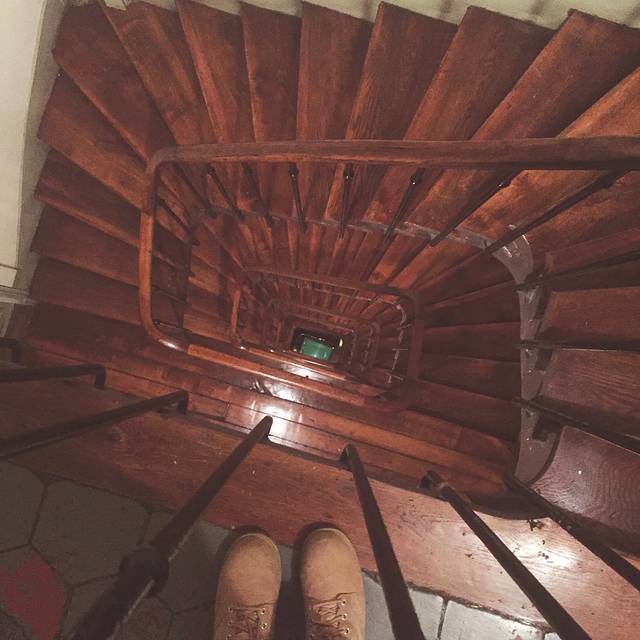 下图是我姐们家的楼梯,巴黎的房子因为都是老房子,所以基本上没有什么电梯,(也有一部分装了小电梯的)。每天回她家要爬七楼,转着圈的往上爬,累得要吐血
