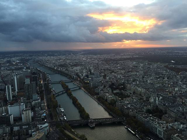 傍晚的时候我的朋友骑着他的摩托车带我去小巴黎转了一圈,最后去铁塔上转了一圈,票价是每人17欧,这个价格是坐电梯上到铁塔顶上的价格,也可以选择不登顶,具体票价我没看。