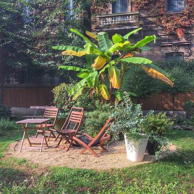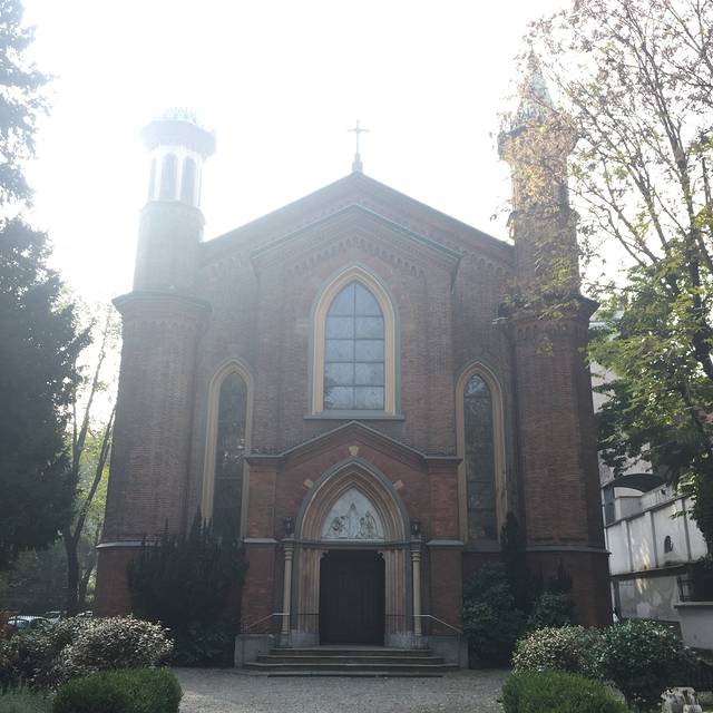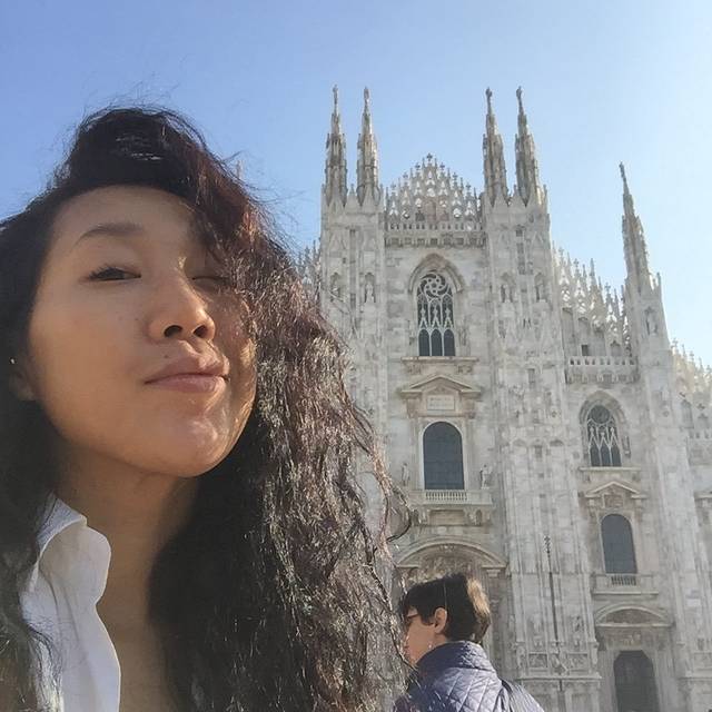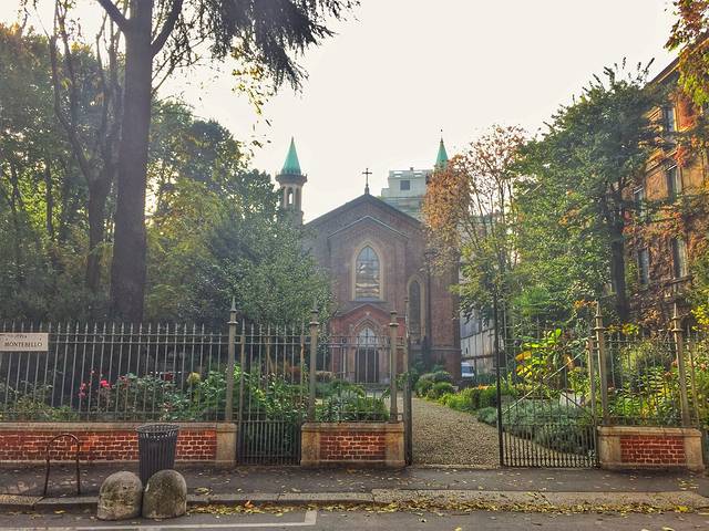 图是我们俩往美术馆走时沿途遇到的一个小教堂,那个时刻成为了我在米兰时最梦幻的一个场景(就是身边人站的不对!)哈哈哈。其实没有啦。天气特别好,晌午的阳光配上宁静的街道和鸟叫声,就像是小时候在看音乐之声时里面的场景。教堂门口的铁门是开着的,我们俩就走进小院子去看了看,但是没有进到教堂里面。