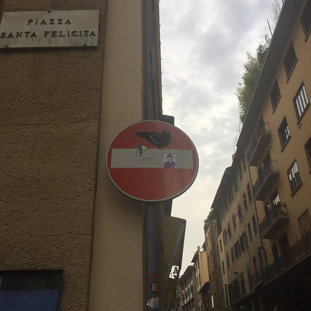 路标指示牌被意大利人民各种的给玩坏了哈哈哈。