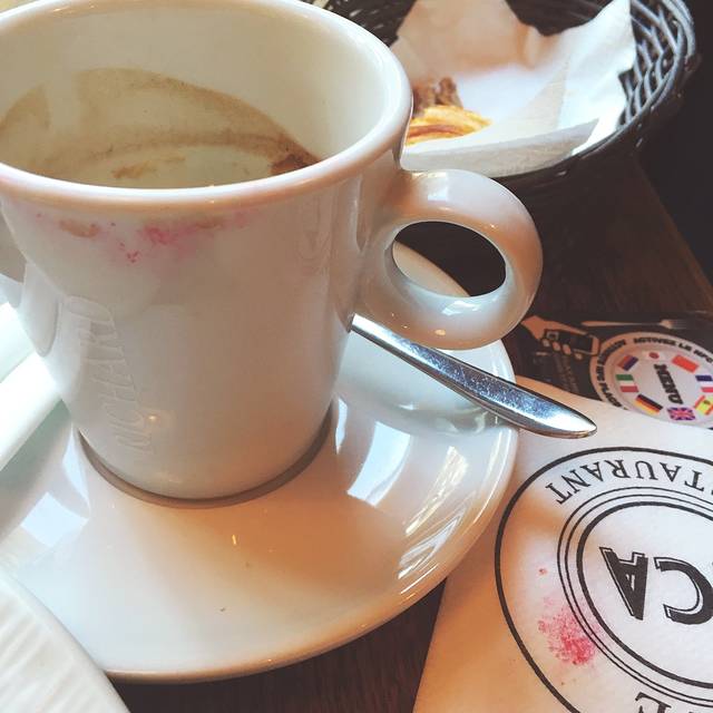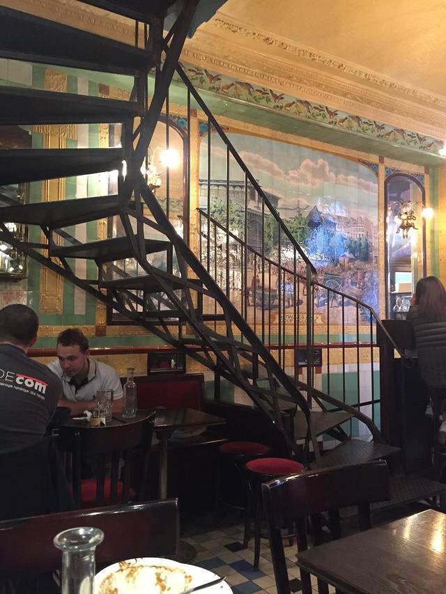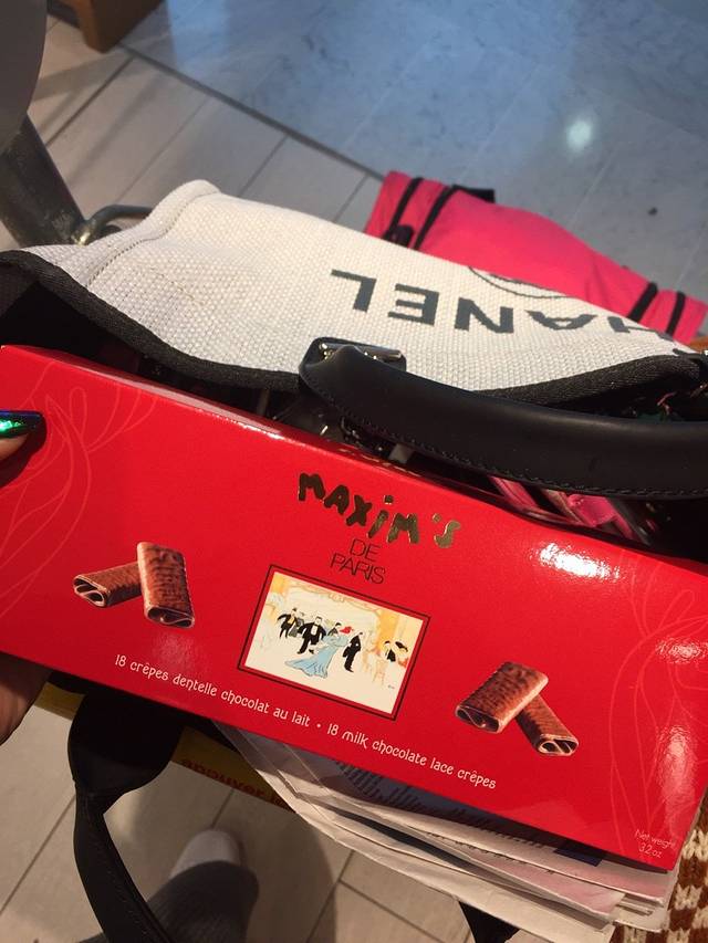 我俩去老佛爷专门卖吃的的那栋楼买了很多所谓巴黎最出名的长条泡芙和马卡龙,然后我买了一个正在特价的胶囊咖啡机。帮朋友去lv买了个包就跑去她推荐的餐厅吃饭。