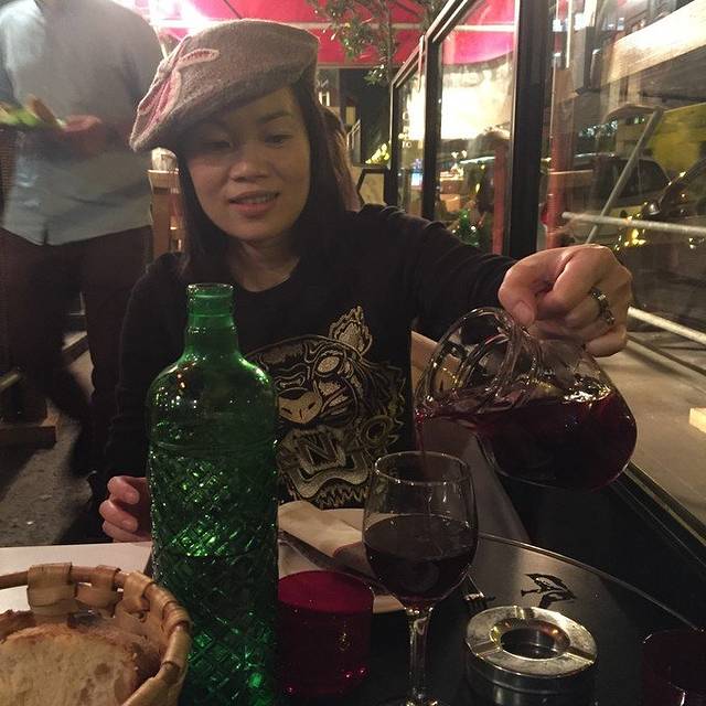 看见天色慢慢暗下来了我决定回青旅等猴哥,我就自己一个人去坐地铁回到青旅没一会他就回来了。他明天中午就要去机场回新西兰,所以我说请他吃个饭,后来我俩用the fork搜到个青旅附近不远的餐厅,走过去后找到餐厅点了三个菜和一瓶红酒,他坚持要结账,我死活不答应,后来达成一致我请客下半场喝酒。