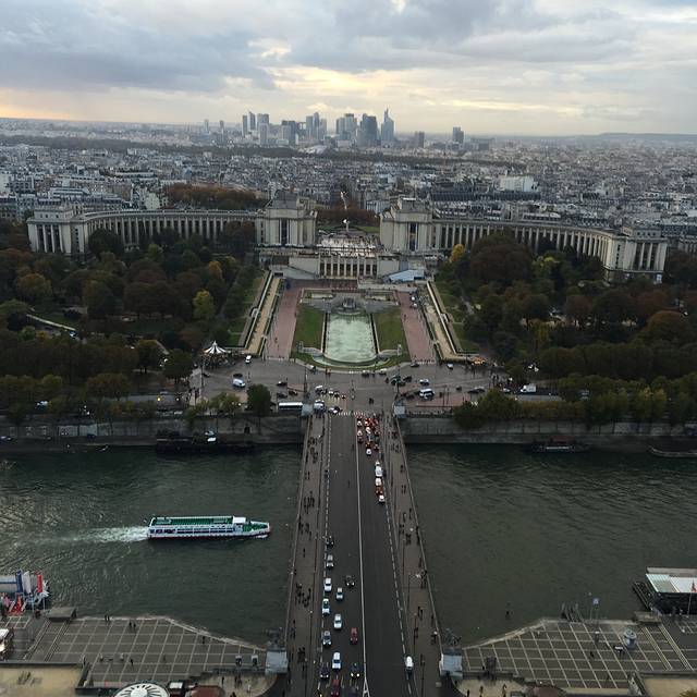 铁塔分三层有一层是餐厅,只针对于用餐的客人开放,接着是中间的一层,这一层有一些纪念品店和卫生间,最上面一层是到顶啦,有一个小窗口卖香槟的,14欧一杯好像是如果我没记错的话,贵的我想哭所以根本不可能喝,