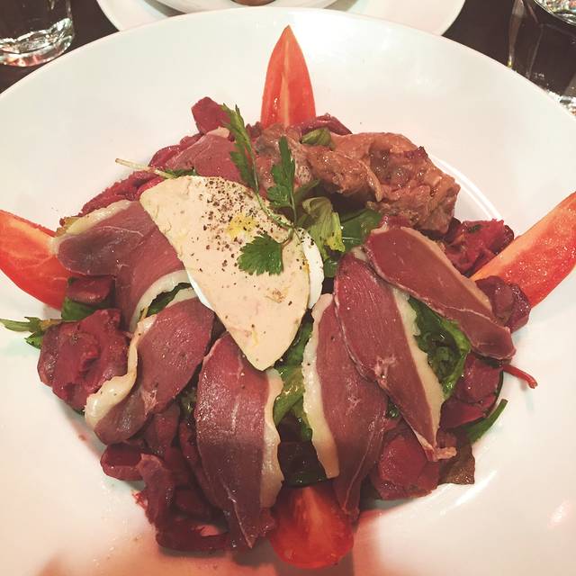 今天的巴黎又开始下雨,下午我姐们要去见她男朋友一起吃饭,我和我那个天津的哥们也约好了一起吃饭,晚上他带我去了一家特别有名的鹅肝店,听说是已经有一百多年的历史了,菜品如下图