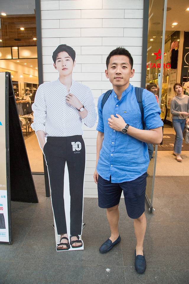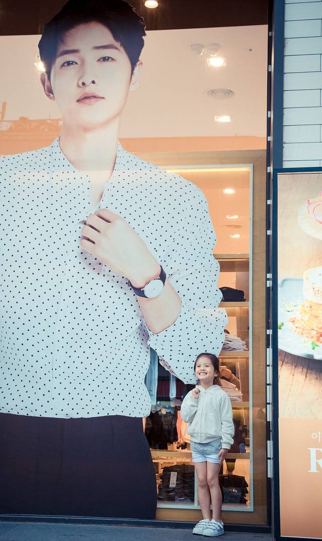 街道两旁各种韩国明星广告大牌坊,虽然现在仲基欧巴当道,我也被太阳的后裔迷的五迷三道,可是我的内心依然属于你,我的都教授。。。可是话说,现在街道上想找到都教授的身影真是困难多了。加油教授,你可千万不要过气呀。