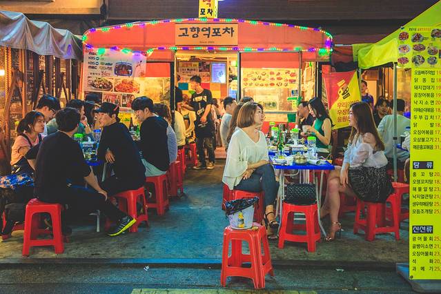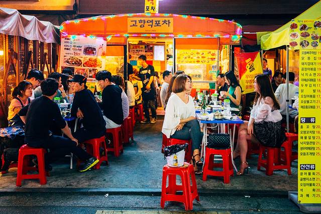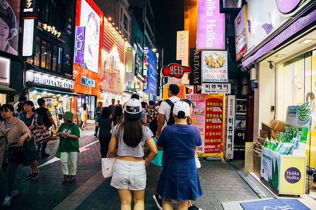 不同于明洞,这里学生明显更多,主要年龄层看起来像在十几岁二十几岁的样子。穿梭街道中,可以看到很多精致的小店、咖啡厅、餐厅、酒吧。当然更好就是不进去,找个地方听听歌、看看热舞,才符合青春的气氛。特别提到的是,这里很多卖衣服的小店,价格很便宜,样子也不错,差不多也都可以退税和刷卡,不妨逛逛。