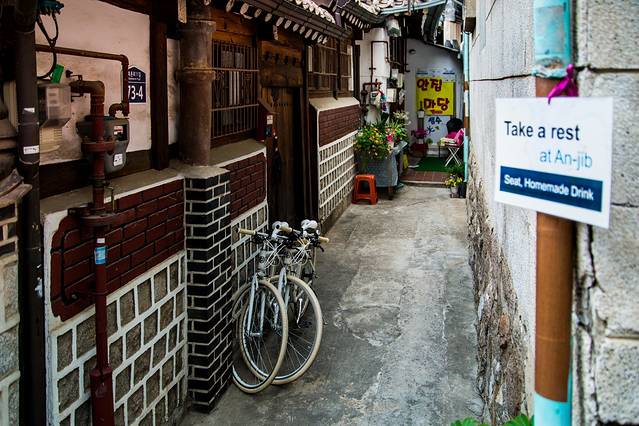 在北村,比较著名的应该就是所谓的北村八景:北村1景 昌德宫全景,北村2景 苑西洞工坊街,北村3景 嘉会洞11番地一带,北村4景 嘉会洞31番地丘陵,北村5景 嘉会洞小巷路,北村6景 嘉会洞小巷路,北村7景 嘉会洞31番地,北村8景 三清洞石阶路,如果有时间的话不妨去找一找。不过我并没有一个个的去探寻,所以只能这样啦。