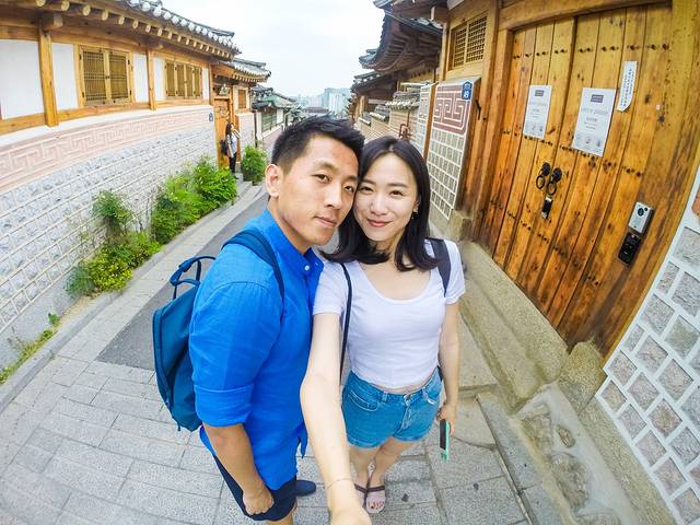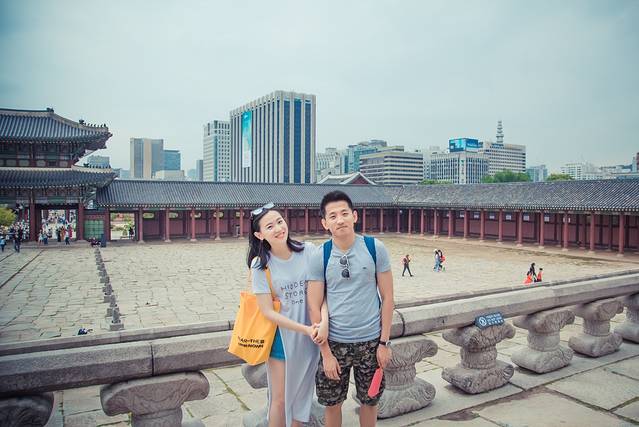 景福宫前漂亮的韩国小情侣,我觉得这个男生如果不是新闻主播,有点对不起这张漂亮的脸蛋。