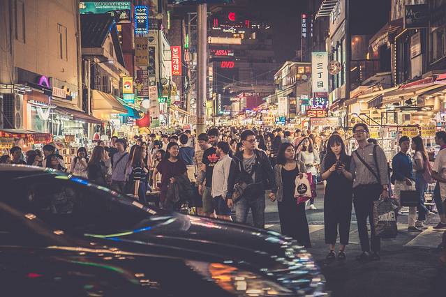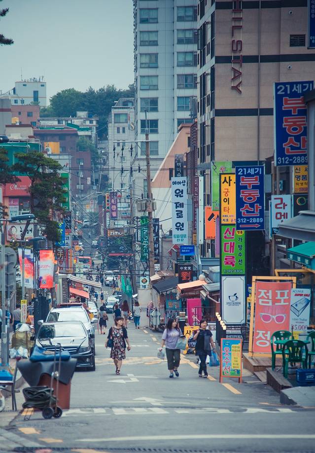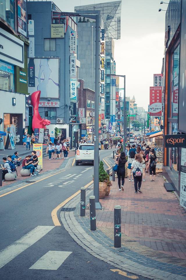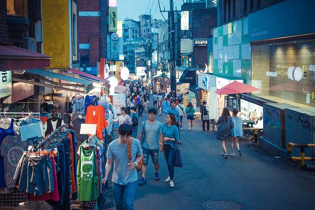周末朝气活力的弘大周边。