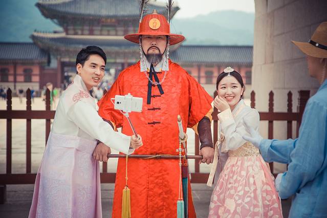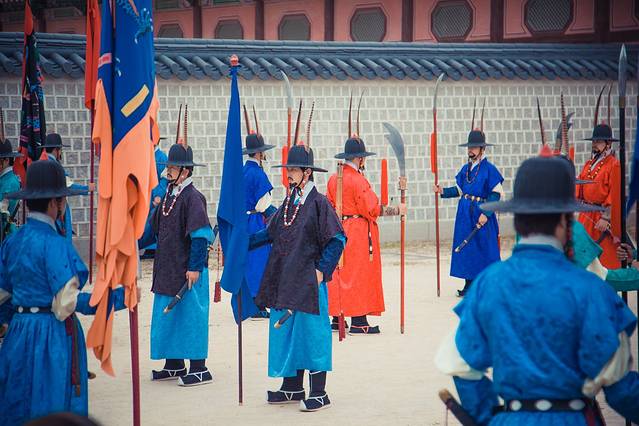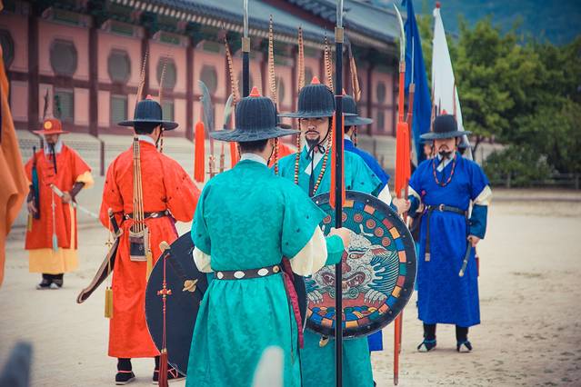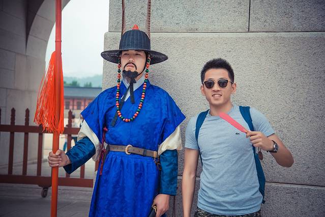 在光化门的门口,有守门将看守,游客们可以排队过去和他们拍照纪念,不过不允许碰到他们,而且也不允许使用自拍杆之类的东西。