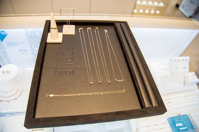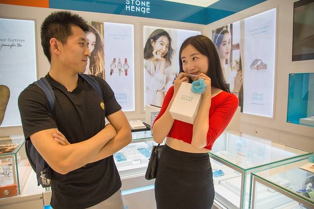 接下来的重点就是Stonehenge专卖店啦,因为我提前在网上看到了这个品牌,是我最喜欢的申敏儿代言,和我一样都是肉嘟嘟的脸,觉着一定很适合我,看了几个样子就直接跑了过来跟店员询问,这时候新世界人少的优势更明显了,服务人员1v1中文服务,喜欢哪个就试戴下,能好好欣赏各种各样的首饰~肖总就在旁边啪啪练习拍女友。