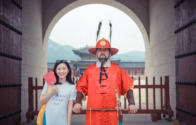 从首尔塔下来下一站,景福宫,沿路上肖总眯眯地笑脸有出现,原来又看到了他的女神了。