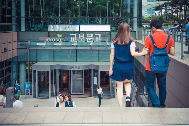 光华门广场的旁边,可以看到教宝文库KYOBO,是一个韩国最大的书店,虽然说是书店,但其实有点像是台湾的诚品,里面不光卖书,还卖很多办公用品、眼镜、纪念品、电子产品,里面也有吃东西的地方,文艺清新的路线,虽然文字都看不懂,不过不知道为什么,总是喜欢跑到各地的这种书店逛一逛。另外,这里也是可以退税的。