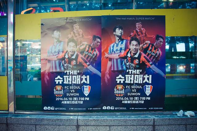 地铁站的旁边挂着首尔FC的比赛海报,可惜时间对不上,要不然我俩搞不好真的会去看场韩国联赛也说不定哦,毕竟咱们前国安外援,亚洲伊布(德扬)还在那呢呀。