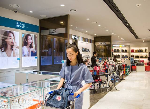 第一,免税店选择,建议新世界免税店---乐天免税店