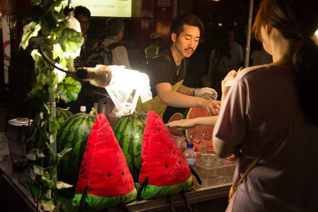 西瓜汁摊位的欧巴,觉得挺明星脸,挺英俊,恐怕也是因为这样,生意特别的好。