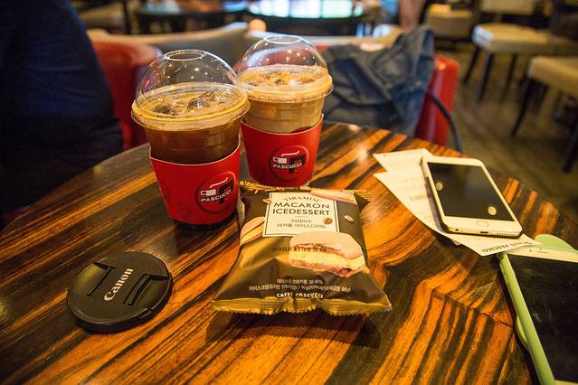 首尔这三天玩下来,走进最多的就是各个韩式咖啡馆了。这家还有特色的马卡龙冰淇淋。