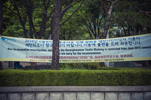 结束了北村的走马观花,一直散步可以到达光华门广场,虽然这天并没有安排景福宫的行程,不过因为想要去光华门广场旁边的教宝文库逛一逛,所以顺便沿路参观。