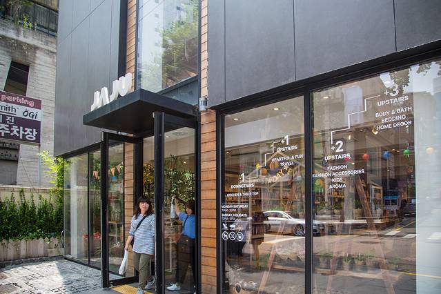 如果林荫路上还有再推荐一家店面,那我推荐下面的这家,首尔版的无印良品JAJU,里面有服饰、居家用品、各种杂货、文具集合,造型简单的同时却又有小别致小心意在其中,里面东西的设计还有韩国的特色,像是勺子啊碗啊筷子啊,买来自己用送给朋友都是很好的选择。我是有种想把整套餐具包下的感觉啦。
