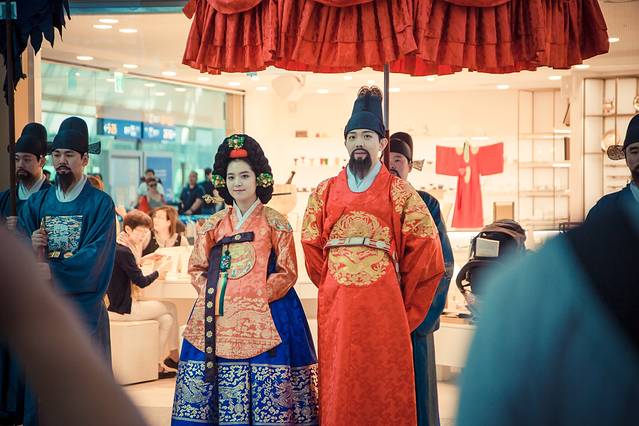 仁川机场里面集成了各个免税店面,各大品牌一应具全,如果逛闷了,还有韩式表演可以看,和光化门的卫兵一样,接受游客合影纪念,不过他们可就亲切多了,还会配合游客摆造型啥的。