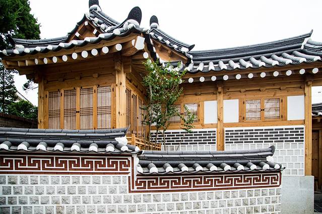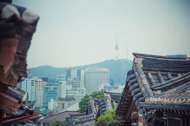 午餐过后,开始北村韩屋村的游览。北村韩屋村其实就是许多韩国传统房屋组成的区域,具体就是指景福宫和昌德宫之间的区域。朝鲜时代统治阶级两班们多在这里居住,遗留下许多传统房屋。北村并非是供游客观赏修建的民俗村,而是人们实际居住生活的村庄,包括11个洞900多座韩屋,所以在这里参观的时候一定不能大声喧哗,以免影响到里面的住户。