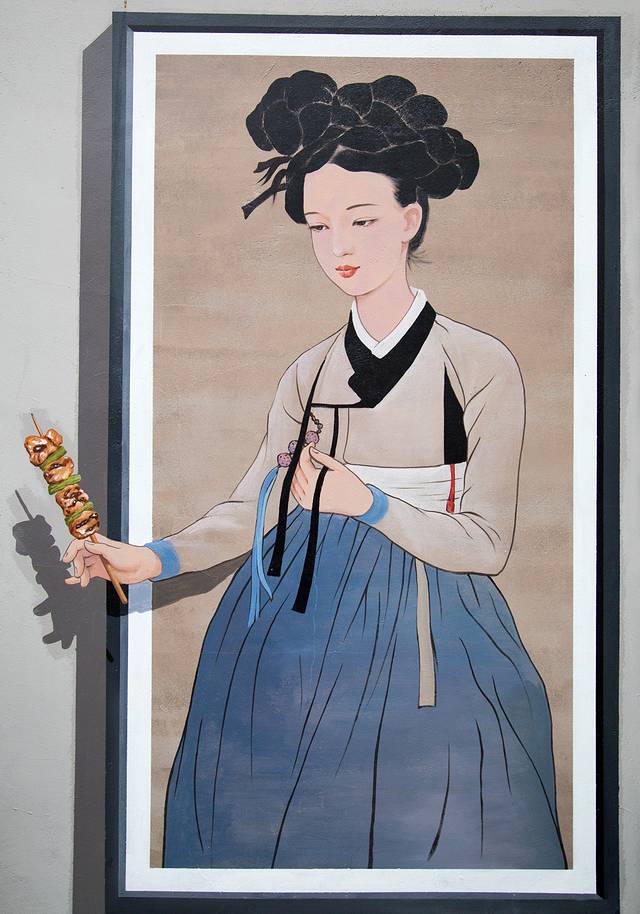 在这里,连卖小吃的壁画都特别具有韩国特色。