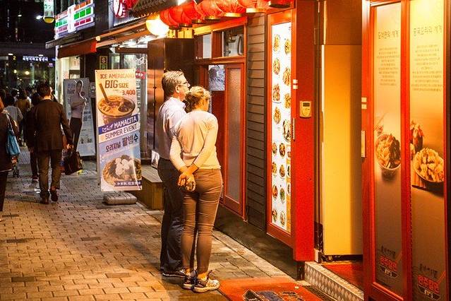 走进人声鼎沸的巷子里,肖总听着街头两边的叫卖声呈现惊呆状,“面膜便宜面膜便宜”“欢迎进来看看”“化妆品可以退税”。他在疑惑,这是在韩国么。不过他也松了口气,一副一点不怕我给他丢在异国他乡的样子,完全没有以前那种语言不通小鸟依人的样子了。