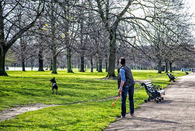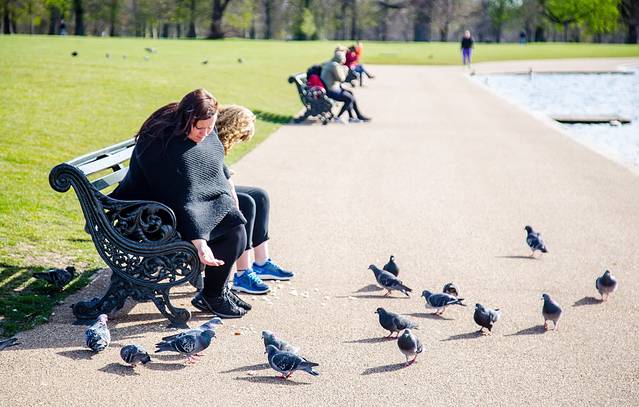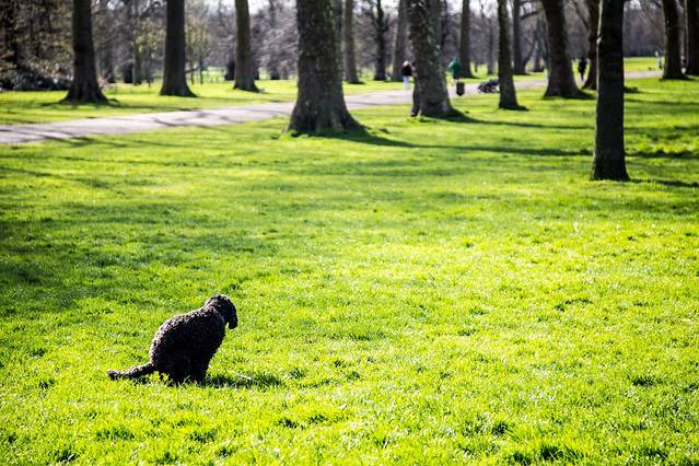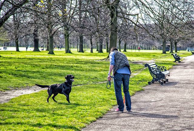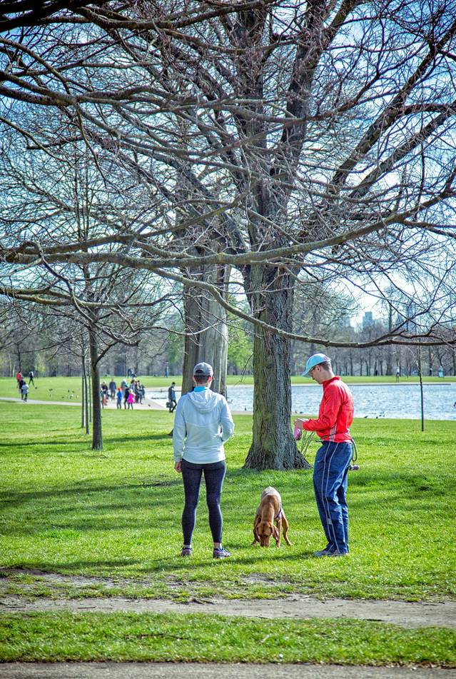 英国就不同了,翠绿平整的草坪随便走,大宽路敞开跑,跑累了,树边逗逗松鼠,湖边喂喂鸽子,狗狗更幸福了,大草坪都不知道往哪打滚好了吧。