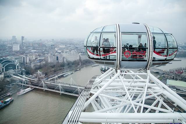 随着摩天轮的攀升,135米的高度,供游客俯瞰伦敦景致。
