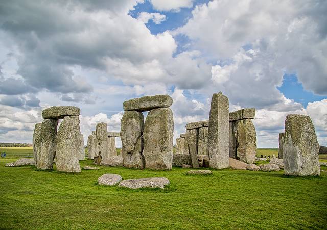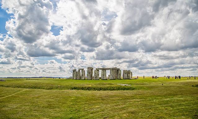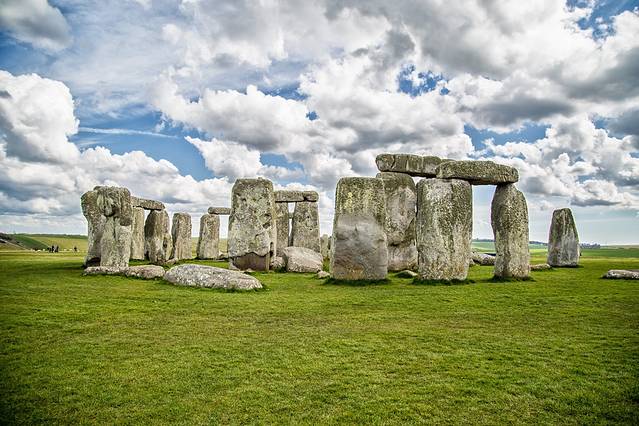 巨石阵,顾名思义,就是由巨大的石头组成的,每块大石头将近50吨。大概建于公元前2300年,它的主轴线、通往石柱的古道和夏至日早晨初升的太阳,在同一条线上;另外,其中还有两块石头的连线指向冬至日落的方向,因此,有专家认为这可能是远古人类为观测天象而建造的。