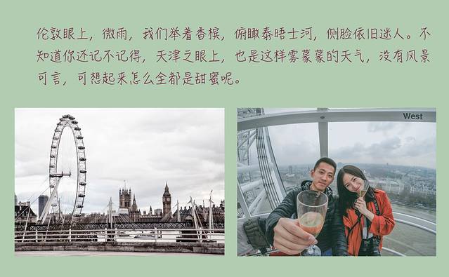 就算天气再不尽如人意,可是彼此陪伴着在伦敦的高空中,手握香槟,俯瞰迷朦的景色,也是浪漫的不像话。