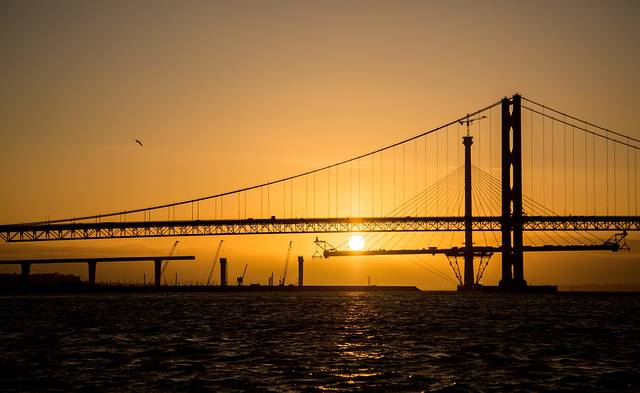 威斯敏斯特大桥上,可以看到伦敦眼。