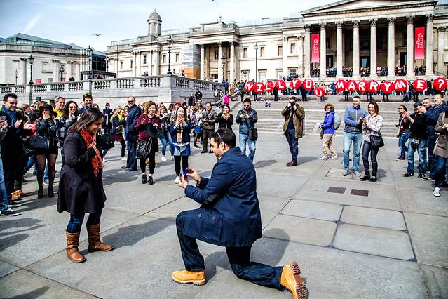 广场上闲晃的时候,突然台阶上有人用伞摆出了Will you marry me的标语,肖总拉着我一回头,原来男女主角就在我们的旁边,游客们自动围成一圈,男主角单膝跪地,女主角满眼欢喜。最后当然是甜蜜的大圆满。