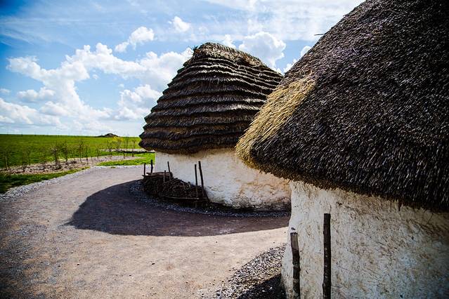 进入了景区,首先会进入一个展馆,里面会有对于巨石阵的介绍,看过展馆,可以看到上面这个是最新重建的新石器时代屋舍,营造出一种史前的感觉。
