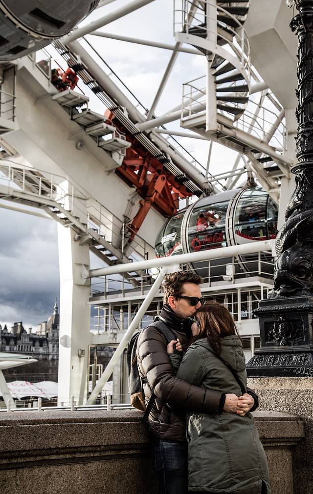 伦敦眼下,一对情侣相拥,清冷的画面,因为他们有了甜美。紧密的身影,任寒风也难以击透吧。也许他们正在许下彼此的承诺。