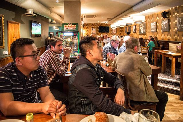 夜幕降临的伦敦略显萧瑟,跟着摄影师寻找到Coldplay曾经驻唱的酒吧。这里已经没有了驻唱的歌手,但是来上一杯纯正的英国啤酒也是心满意足的。