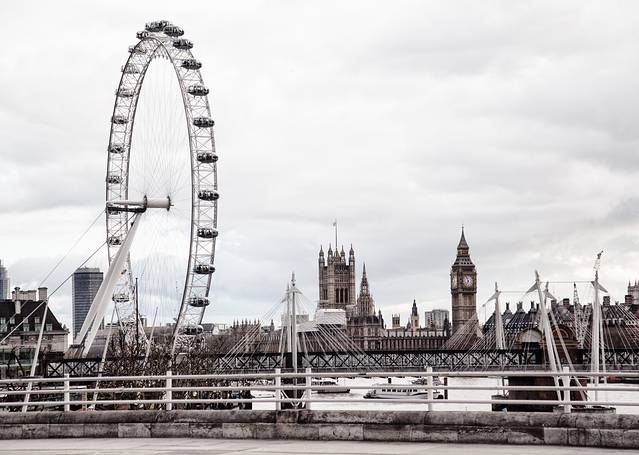 眨眼的功夫,抬头看向伦敦眼,天空寻到空隙,漏出湛蓝,但是一会儿,云层归来,蓝天又再次难以寻觅。